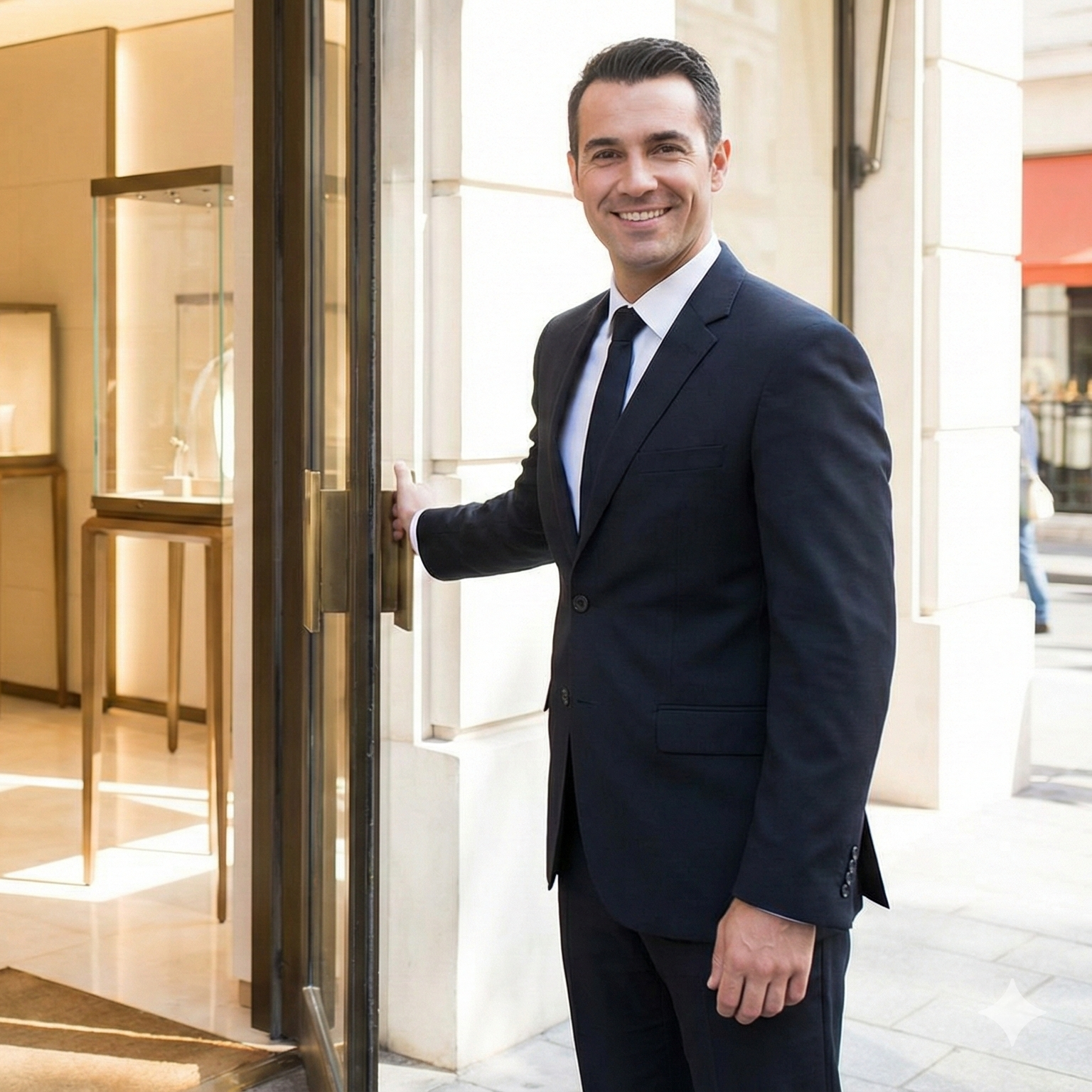 RMS Security Service offre un servizio di doorman in nero progettato su misura per boutique, showroom e flagship store